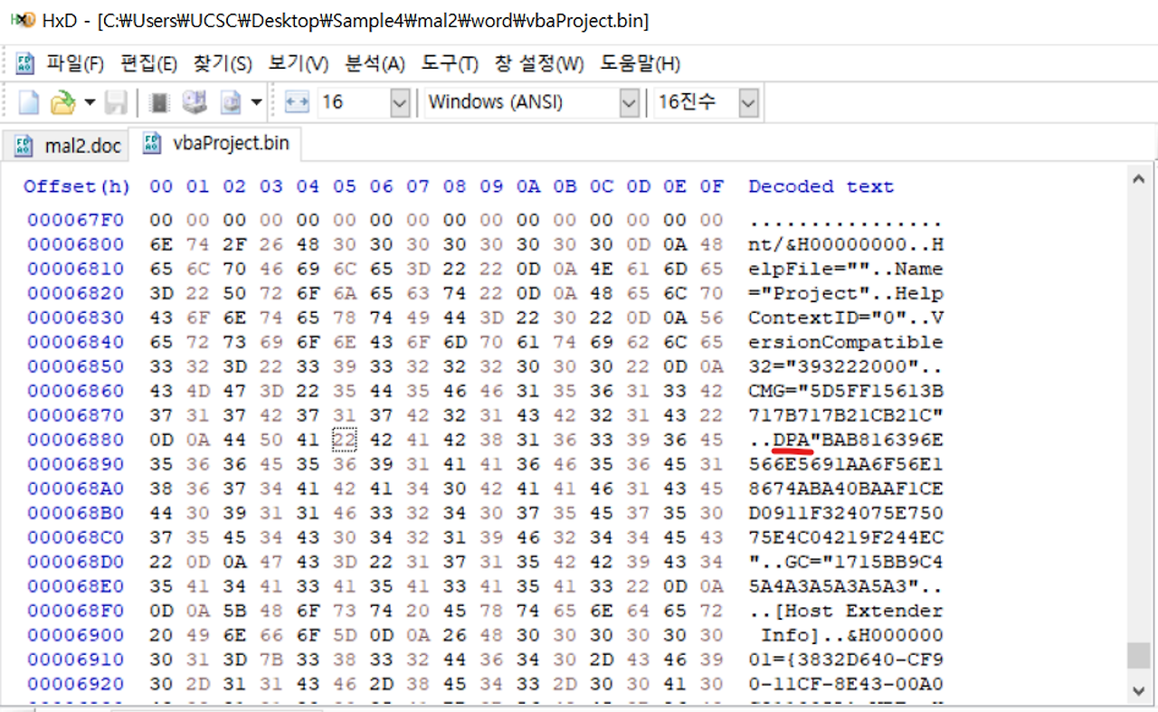 DPB 는 보안을 인증하는 부분 - ms word 영역에서 암호가 되는 영역임 (해쉬화된 암호가 나오는 곳)