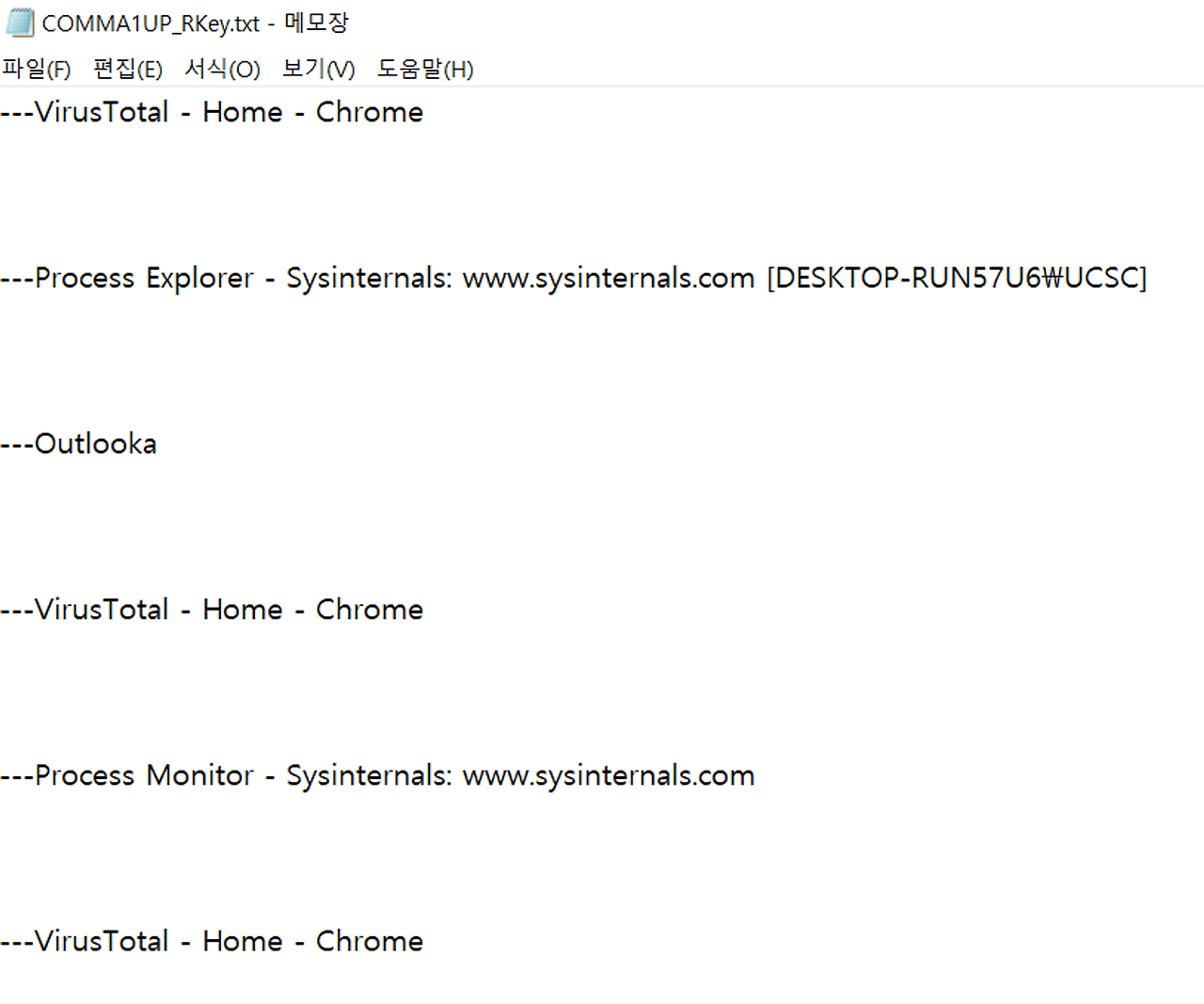 추가적으로 생성되는 .exe 파일들은 별도로 샘플링을 해서 스냅샷으로 초기화면으로 돌린 화면에서 어떠한 행위를 하는지 돌려봐야한다.