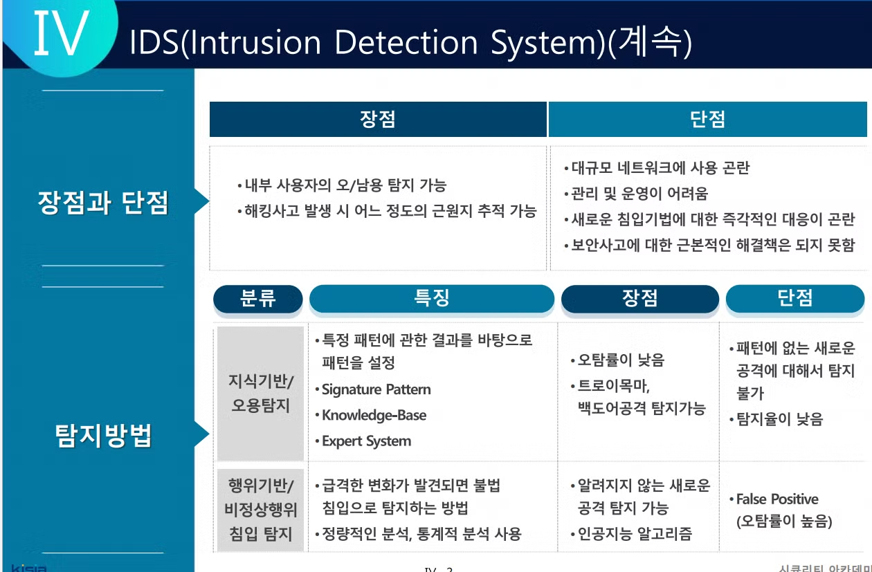 - 패턴에 없는 새로운 공격에 대해서 탐지 불가