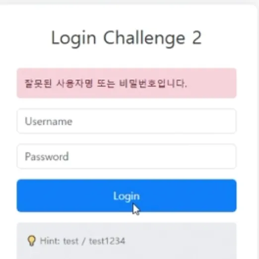 → test’ and ‘ → follow direction → 결과, 로그인 오류가 발생하였습니다.