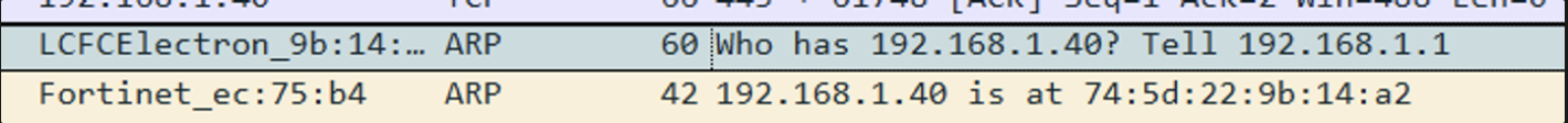 192.168.1.40의 MAC주소는 74:5d:22:9b:14:a2 이야 !