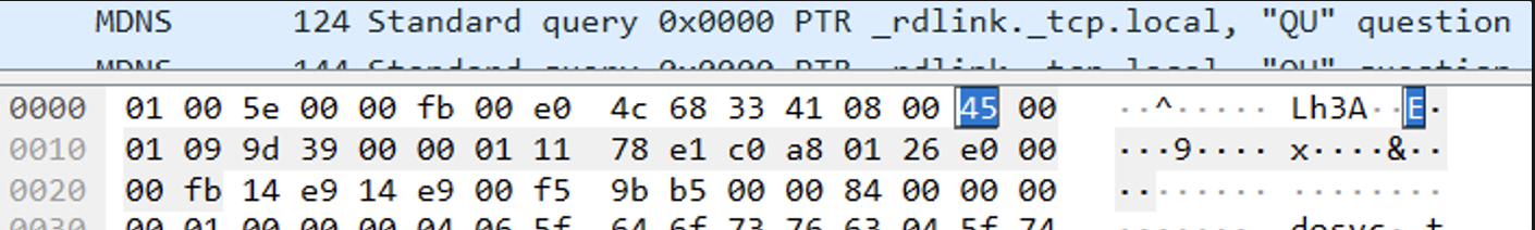 목적지와 소스의 아이피의 16진수(각 6바이트) + type 2바이트 아스키코드