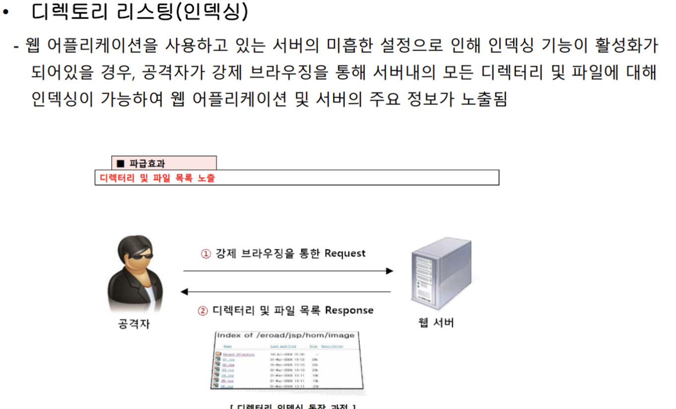 - 웹 어플리케이션 상에 존재하는 모든 실행경로에 대해서 접근제어를 검사하지 않거나 미흡한 경우 공격자가 접근 가능한 실행경로를 통해 사용자의 정보를 유출 하거나 일시적인 권한 상승이 가능한 취약점.