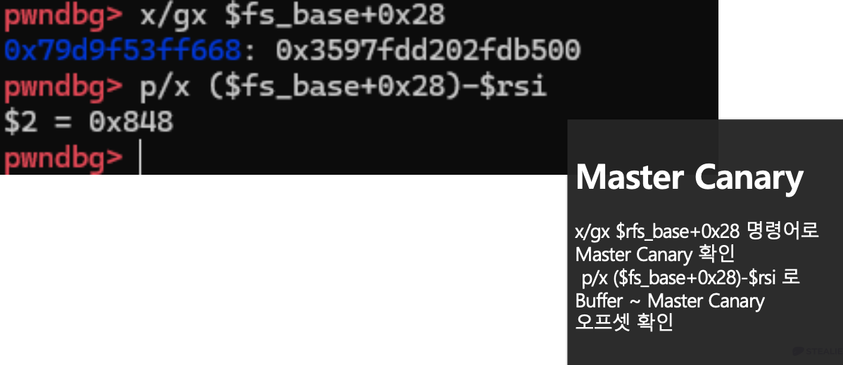 - 일반적으로 마스터 카나리는 전역 공간에 저장되나 쓰레드에서는 마스터 카나리가 스택 영역에 저장