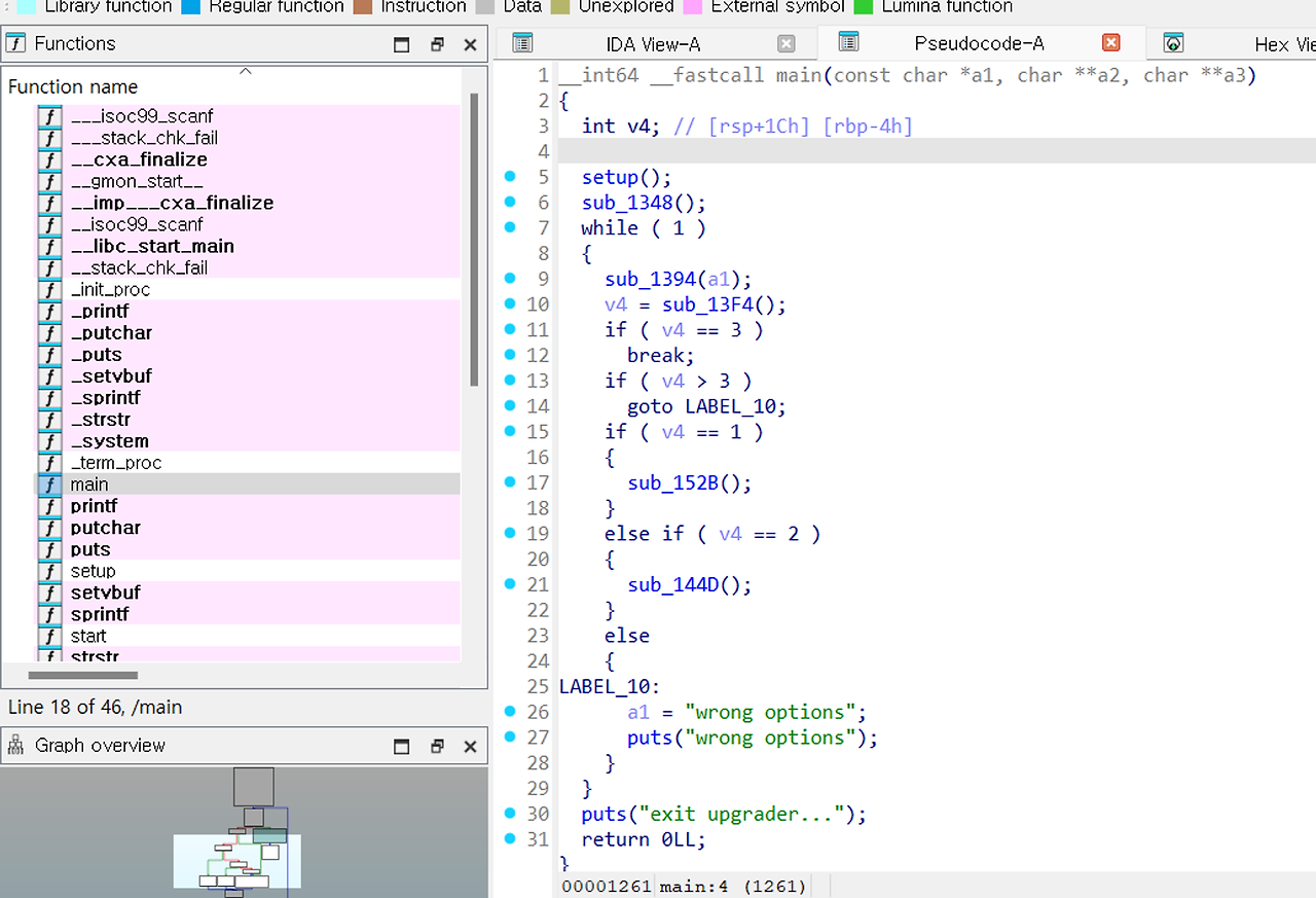 IDA를 사용하여 lucky_draw 실행 후 바이너리 정적 분석