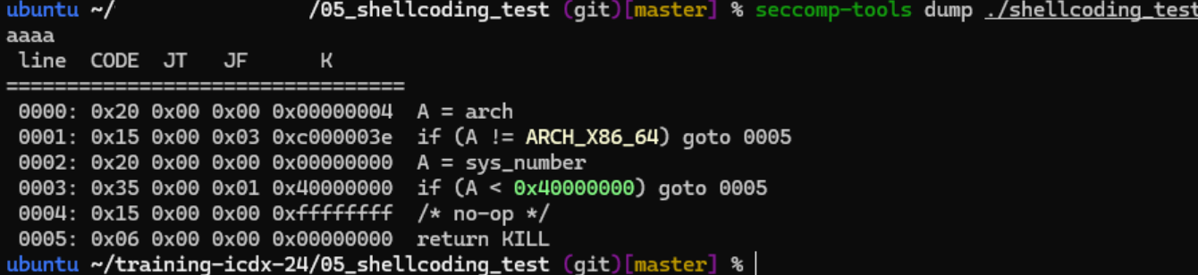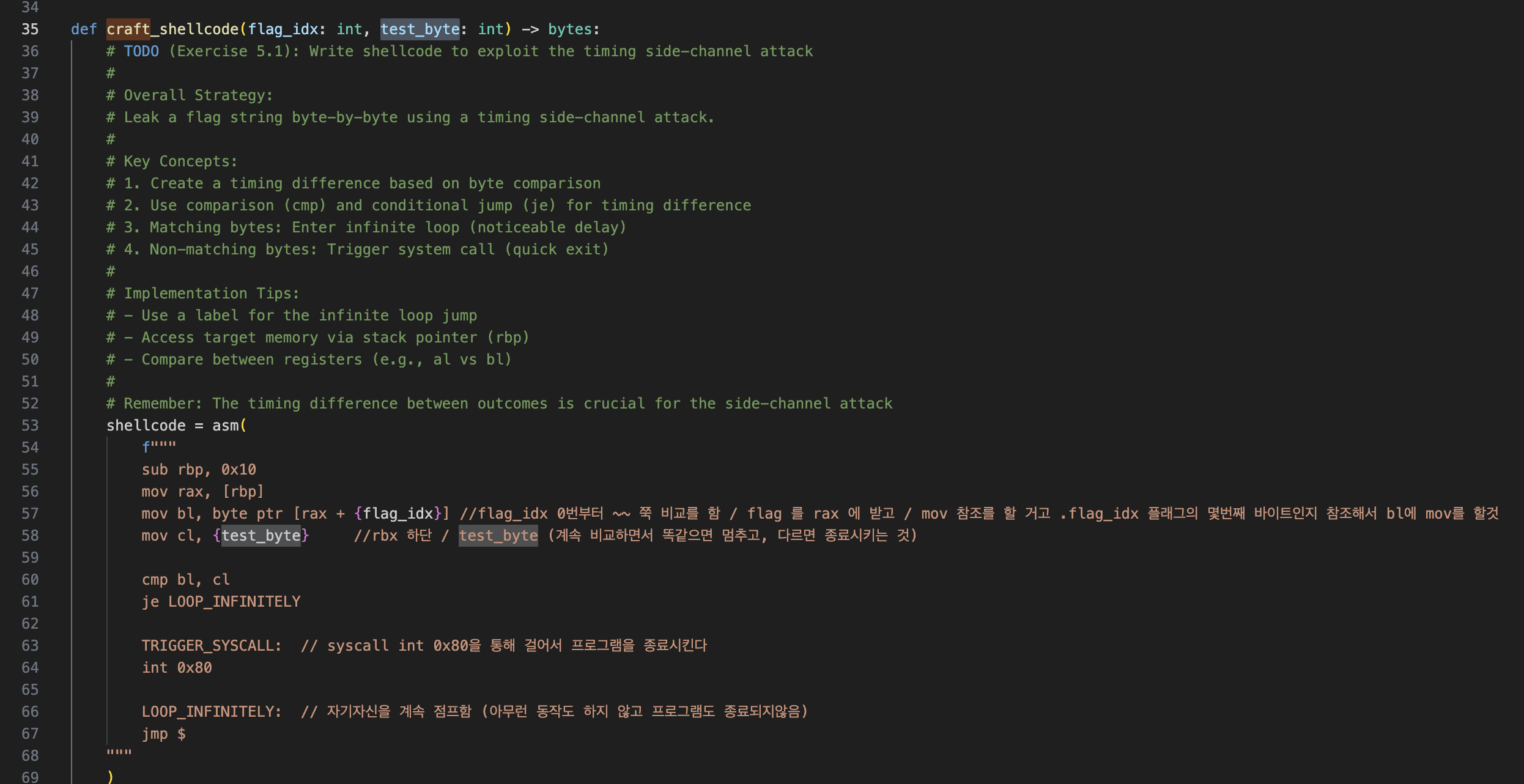 아래와 같은 shellcode를 통해서 한 문자열씩 비교해가면서 flag 를 추출할 수 있다.
