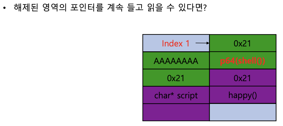 위의 USE AFTER FREE 취약점 스택구조 참고
