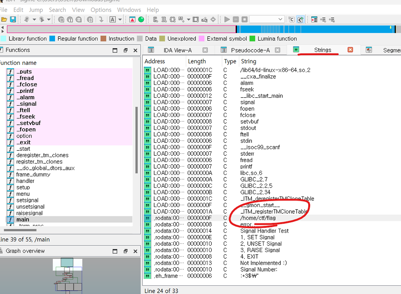 IDA를 사용하여 lucky_draw 실행 후 바이너리 정적 분석