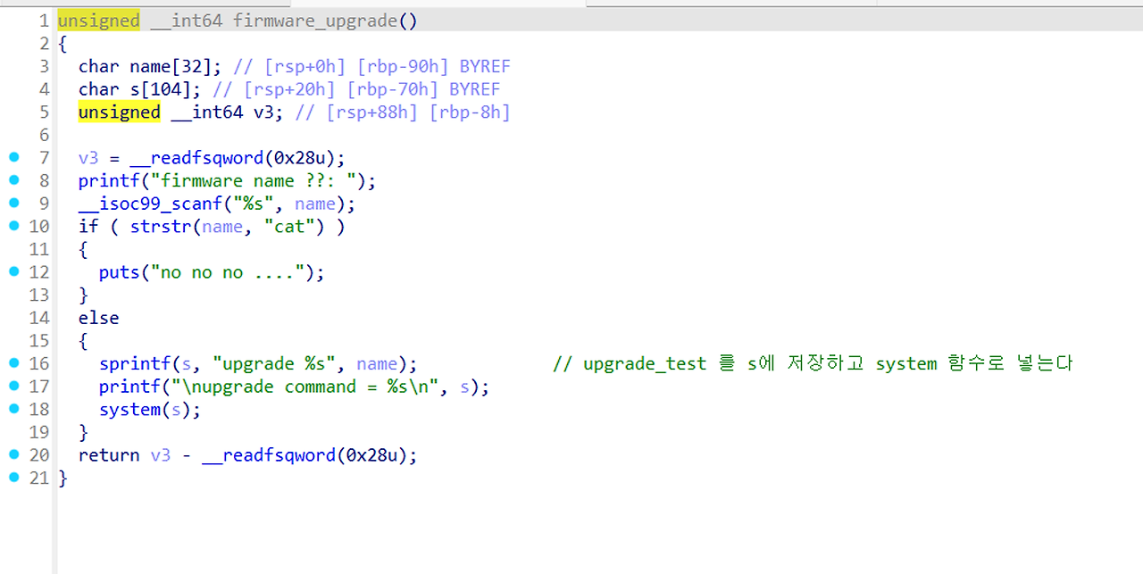 다시말해 rsi 는 buffer에 위치해서 0x28만큼 떨어져있다.