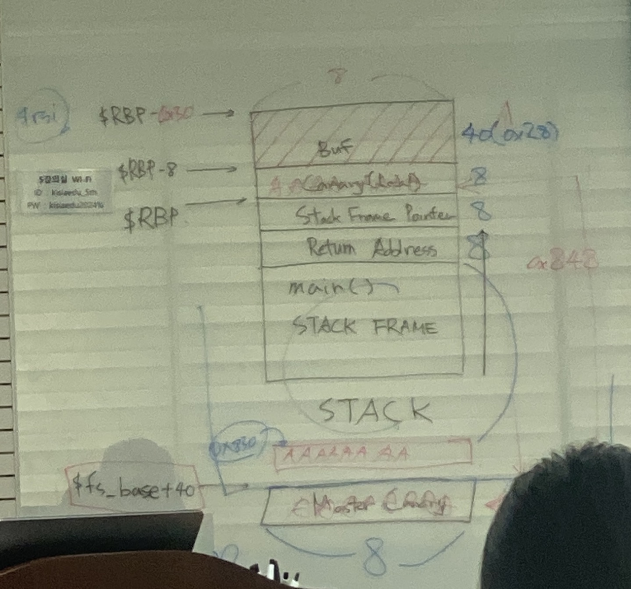 - 로컬 카나리는 함수 종료 시 검사를 위해 마스터 카나리와 비교 -> 값이 다르면 스택오버플로우가 발생했다고 판단하고 프로그램을 비정상 종료시킴 (stack smashing detected error 발생)