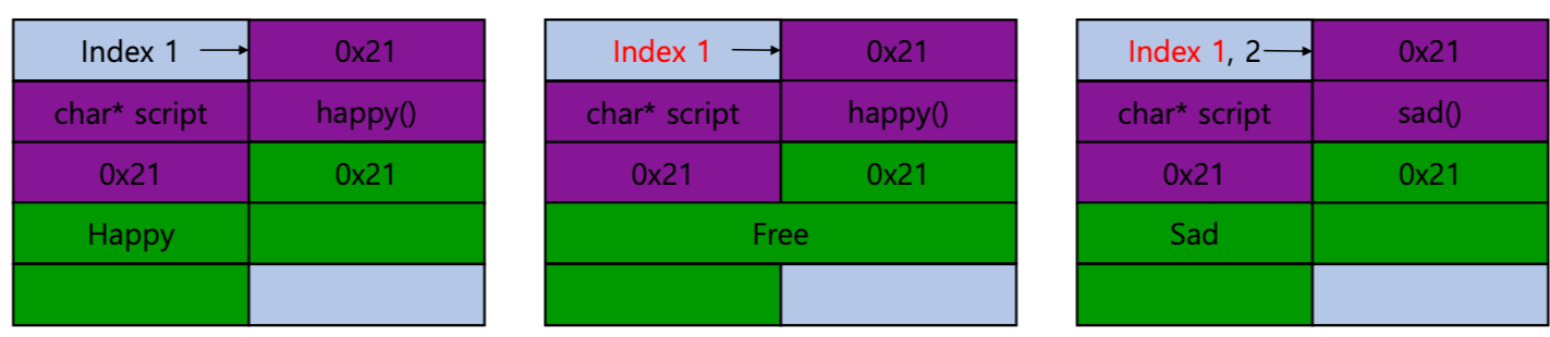 위의 USE AFTER FREE 취약점 스택구조 참고