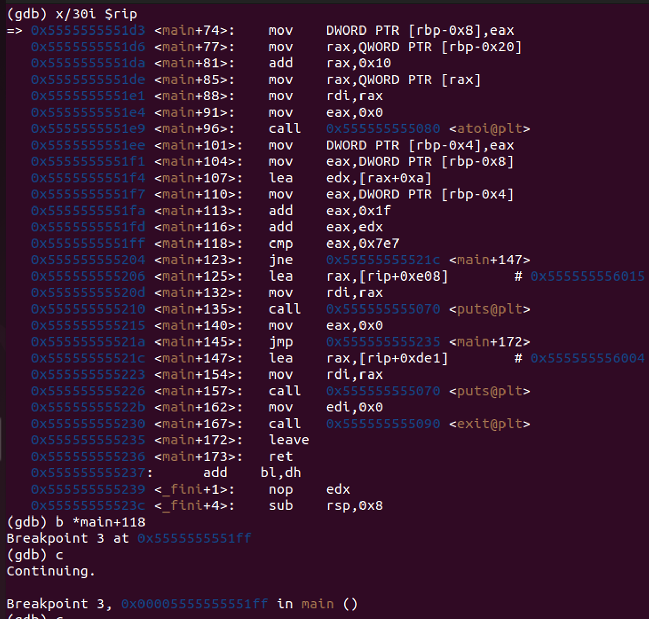break point 를 걸고 버퍼를 확인하는 작업을 GDB 에서 할 수 있다.