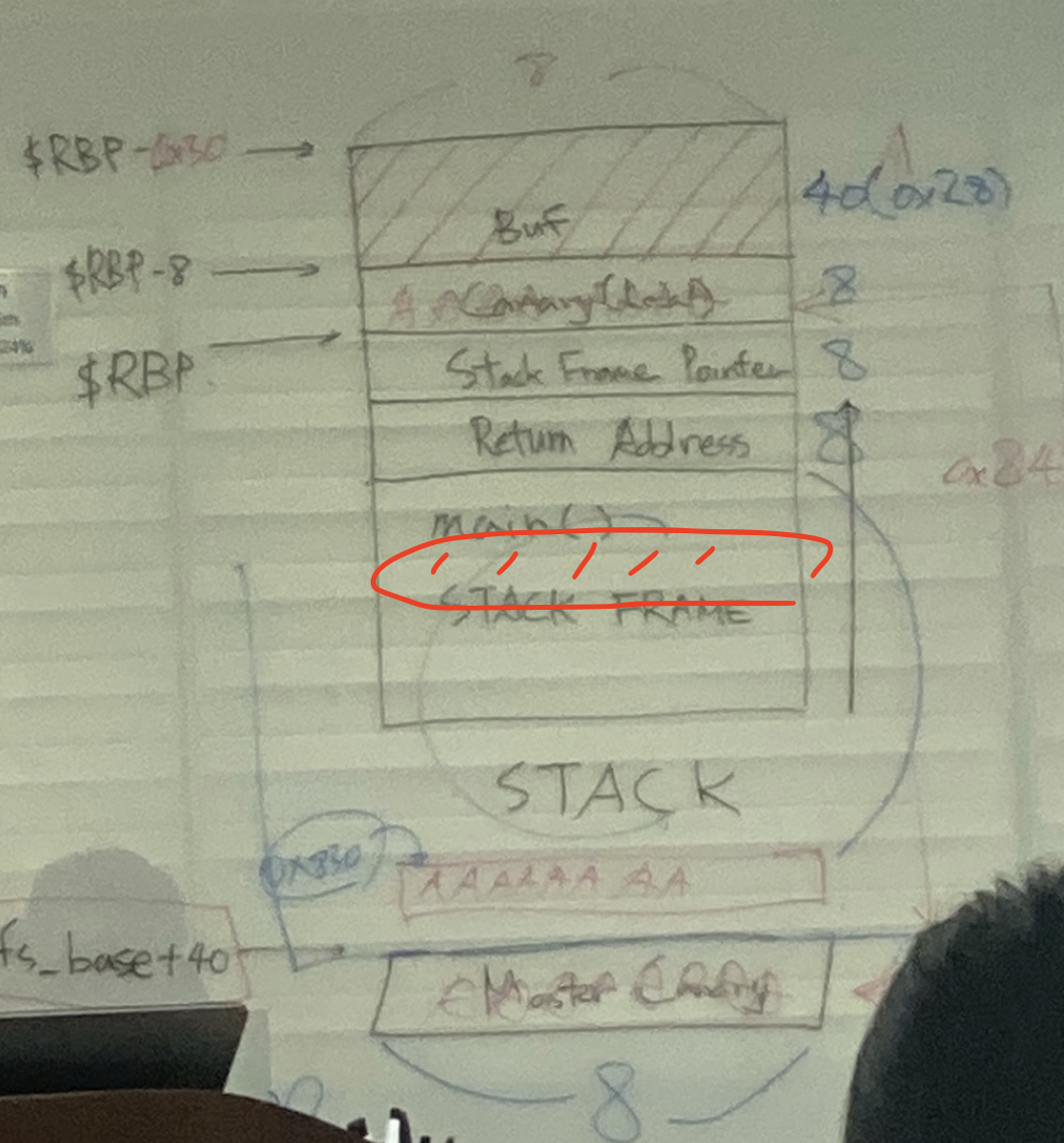 GDB에서 확인해야할 사항: 로컬 카나리 (stack frame 에 있는 것) ,마스터 카나리 (실제 원본 카나리)
